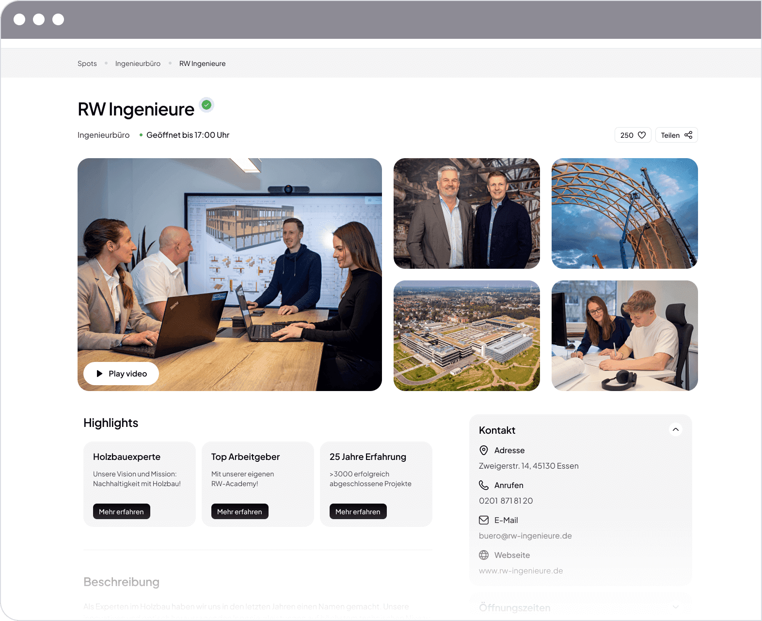 Dein Unternehmen wird auf dem RÜSPOTS Account präsentiert und profitiert von unserer stetig wachsenden Reichweite und Werbemaßnahmen.
