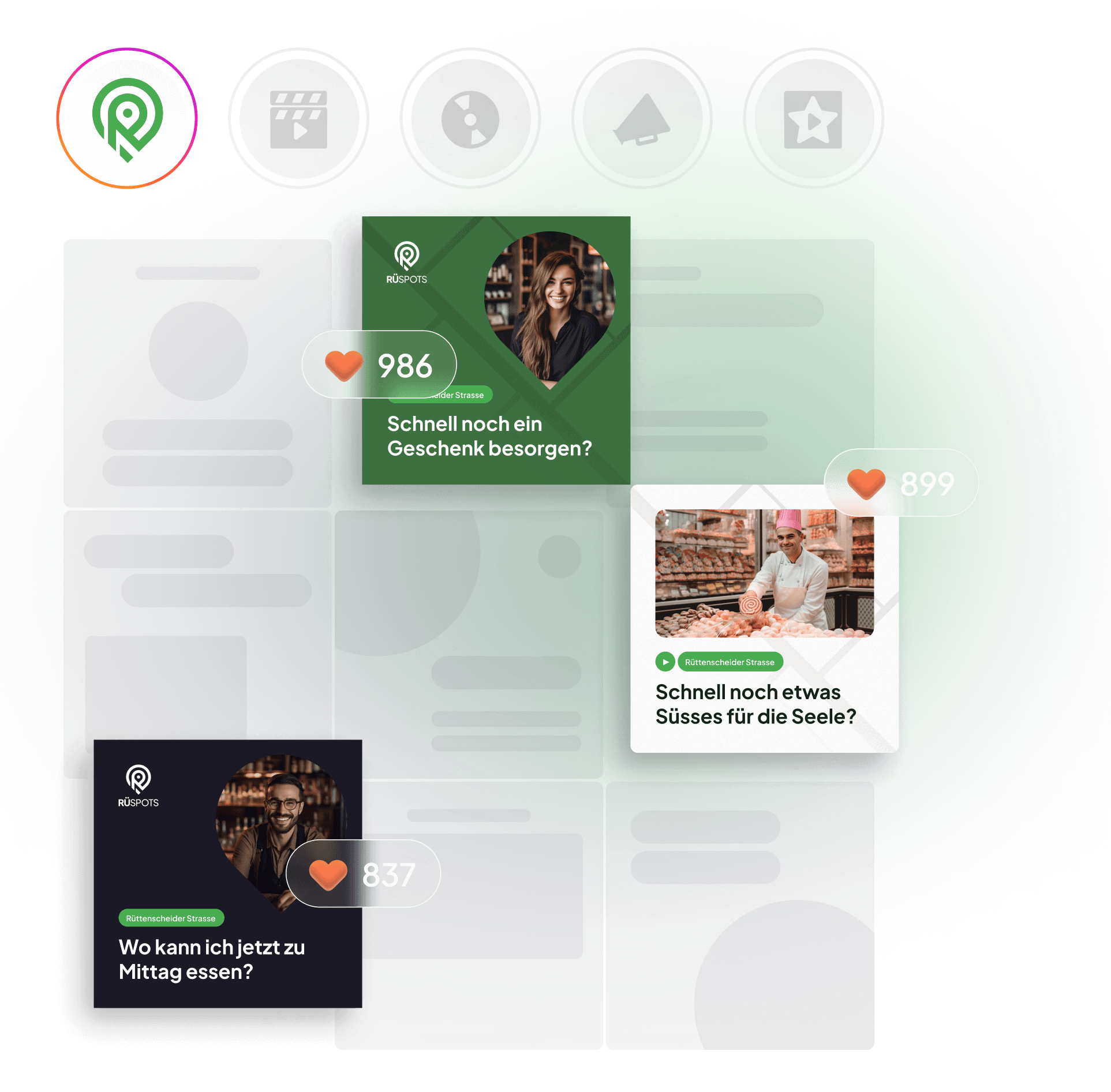 Mit einer intuitiven Benutzeroberfläche, innovativen Features und einem 360° Marketing wird RÜSPOTS die Art und Weise, wie Dein Unternehmen gesehen und erlebt wird, verändern. Dein Benefit: Mehr Aufmerksamkeit und RÜ Fans!